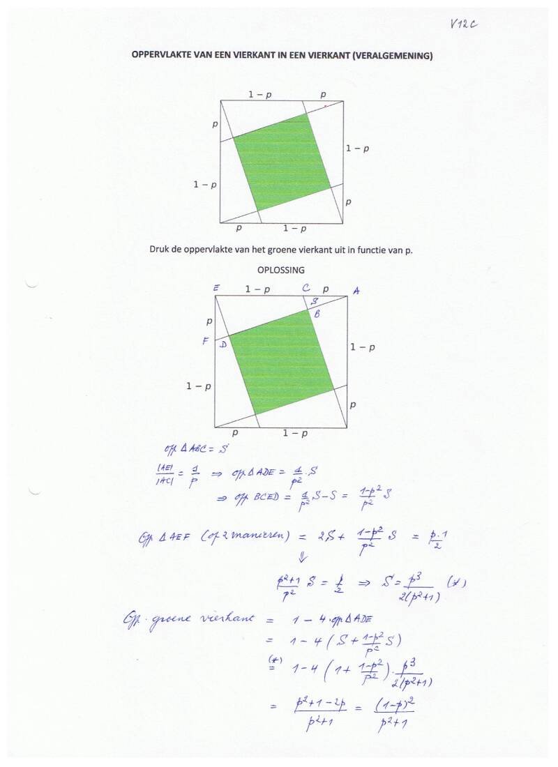 TOEMAATJE 1 - FORMULE VOOR DE OPPERVLAKTE VAN EEN VIERKANT IN EEN DRIEHOEK